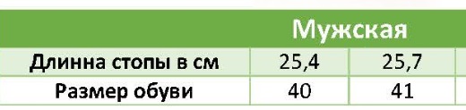 Таблица размеров: