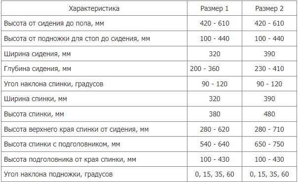- регулировка высоты и наклона спинки;
